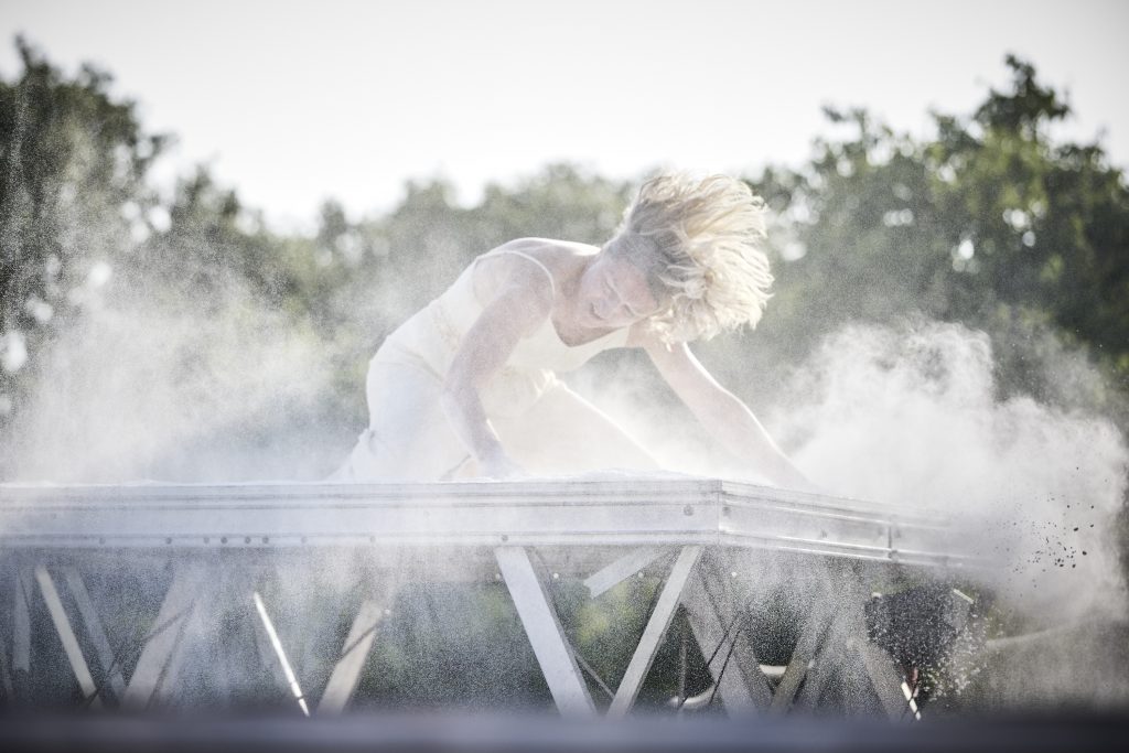 Ce qui fait cirque chez elle, c’est sa manière de se mettre en équilibre, de chercher le point de rupture, celui qui peut provoquer une brisure intérieure, une blessure invisible. Son corps bascule dans la souffrance, elle peut à peine respirer, la contorsion est un exercice périlleux qu’il faut assumer jusqu’au bout.